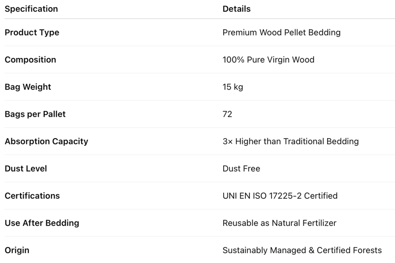 Starry Stable is made exclusively from pure virgin wood sourced from sustainably managed and certified forests. Completely natural and chemical-free, it ensures a healthy and safe environment for your horse. After use, Starry Stable can be repurposed as a natural fertilizer — the organic material, enriched with nitrogen from the horse’s manure, decomposes easily and returns valuable nutrients to the soil, promoting healthy plant growth and closing the sustainability loop